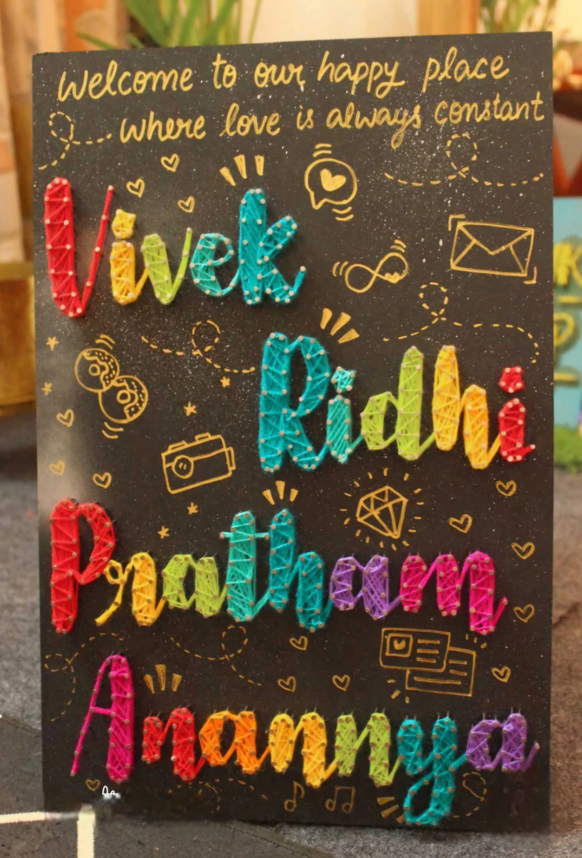 - Custom string art with multiple family names